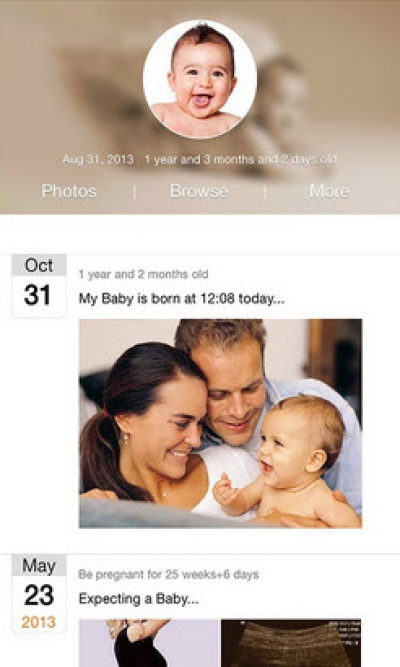 “我的宝宝”为妈妈、爸爸或其他家庭成员专门设计,您能快速建立宝宝的成长日记,添加宝宝的日常生活照片,输入一些文字记录,逐步累计成时光相册。
