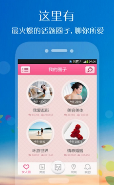 圈子:火爆的话题圈子----时尚服饰、美容护肤、减肥塑身、情感家庭等等,精彩不间断