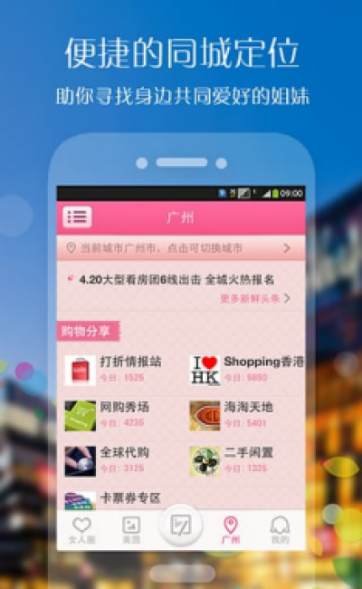 同城:话题为媒,知己相随。便捷的同城定位助你寻找身边共同爱好的好姐妹