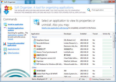 高级软件卸载工具(Soft Organizer)是由ChemTable Software出品的一款软件管理软件,其实是一款高级软件卸载大师。Soft Organizer可监视应用程序的安装过程中对系统的更改,也就是安装前后进行扫描,进行对比,保存记录,卸载时按照更改进行卸载,还是比较彻底的。当然,在使用中造成的更改是没有被监控的,也就没法还原的。