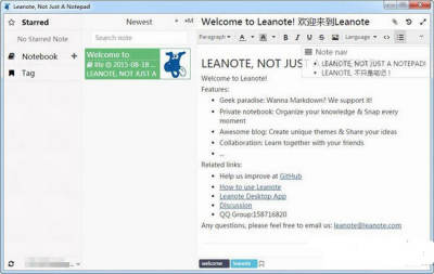 随着网络云存储技术的逐渐成熟,其应用范围已经不仅仅局限与大家常见的网盘了。leanote云笔记是一款功能强大,操作简的免费国产笔记软件。leanote云笔记针对不同的用法提供了不同的功能,用户可用来编辑博客,编辑代码以及日常笔记等信息,软件支持云共享,支持添加附件,支持图片等,界面清爽,使用简单。