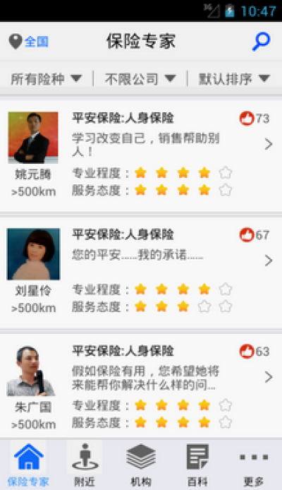 【保险专家】,不一样的保险APP!这里有众多专家级别的保险代理人;在这里您可以找到自己喜欢的保险经理、附近的保险经理、向她们咨询保险、笑侃人生等等;当然,如果您是保险经理,那欢迎您成为她们中的一员。。。