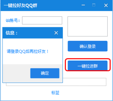 帮助用户一键批量邀请所有的好友进指定QQ群,这款软件操作非常简单,你只需要登陆QQ,输入要加的QQ群号,然后即可一键拉人进QQ群,需要注意的是你必须是所在QQ群的管理员,否则就拉不了好友进群。