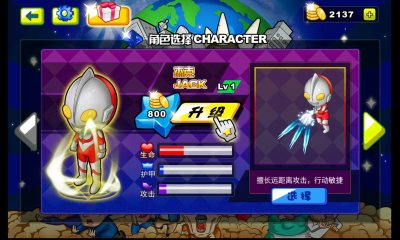 选择你喜爱的奥特曼,可以通过升级,强化其能力,提升其击杀怪兽的能力。
