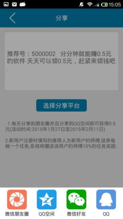 1.下载口袋ATM软件,一点就有钱2.拜师收徒,躺着就能赚钱3.分享QQ空间、朋友圈,多分享,多收徒4.支付宝兑换,啥时想换啥时换5.绑定手机号,新注册,填推荐人就送3元