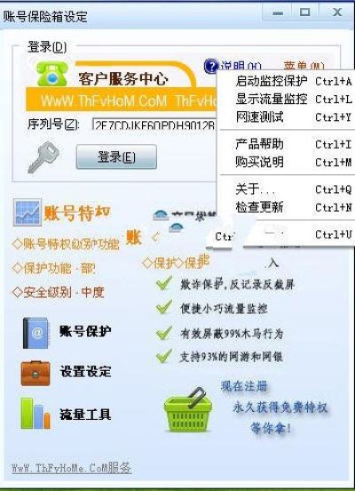 玩游戏最担心的就是自己的账号被盗了,所以给自己的游戏账号多加一层保护还是很有必要的。THFY账号保险箱立足于账号安全,是一款网游玩家必备的账号安全工具!本产品能有效的保护您的游戏账号安全。使用以下账户保护机制为您的游戏世界保驾护航。