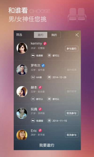 双人座是一个以垂直话剧、歌舞剧和音乐剧等演出为兴趣话题的社交平台,用户朋友们可以在这里和你喜欢的异性朋友进行约会去看精彩演出,找到自己人生中的另一半,感兴趣的朋友快加入进来吧!