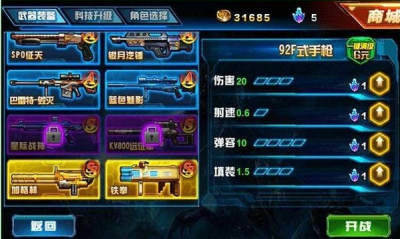 - 选择关卡,购买新的武器直接进入战斗画面