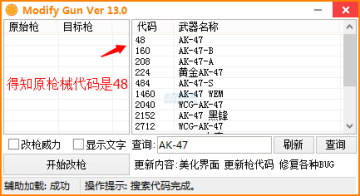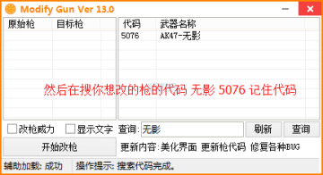 然后搜你想要改的枪的代码,如无影,然后记住代码
