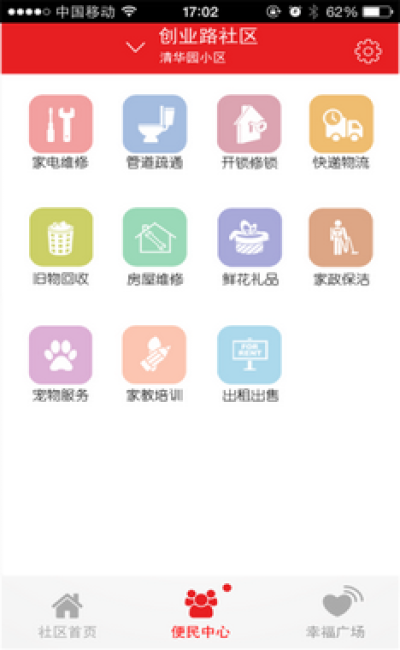 便民中心----社区之家为您备好周边维修、快递、礼品、家政等服务信息,生活更便捷。