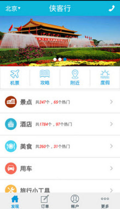这款侠客行手机应用是一个一站式旅游服务平台,解决大家旅行途中的各种问题,包括购物、美食、住宿和往返机票等等,帮助用户以最低的价格获取最高的旅游享受,是每一个旅行爱好者必备工具哟!