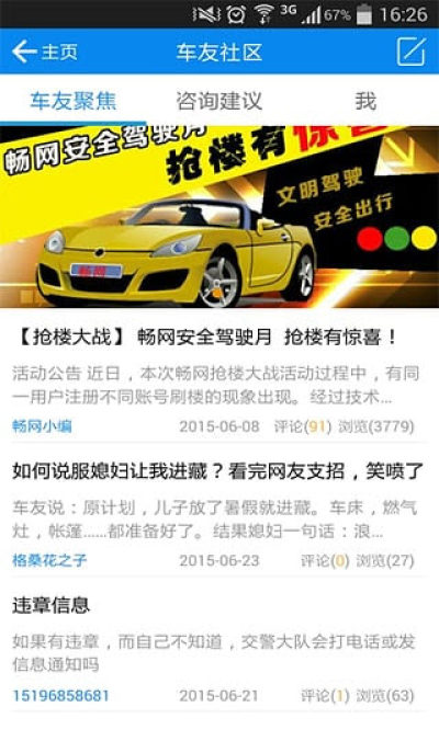 驾讯通同时还提供车辆年检信息查询、驾驶证记分查询等便捷服务。您还可以在"车友社区"里和广大的车友们一起谈天说地,分享您的有车生活。