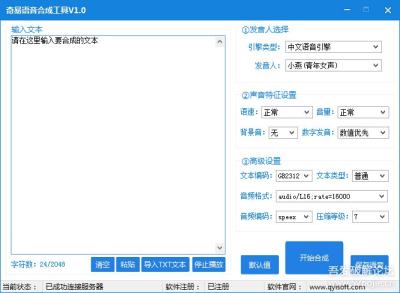 奇易语音合成工具是一款非常好用的语音合成工具,提供任意中英文文本语音合成功能,合成音质可媲美真人发音,能够提供普通话、广东话、方言、英语、外国语等上几十个语种,包含业界领先的普通话与英语同音混读、广东话与英语同音混读。