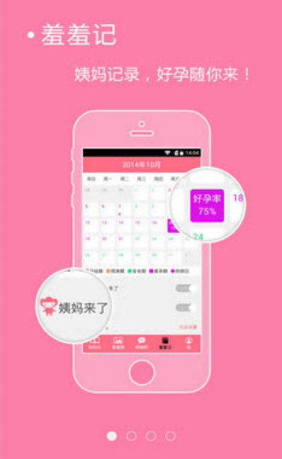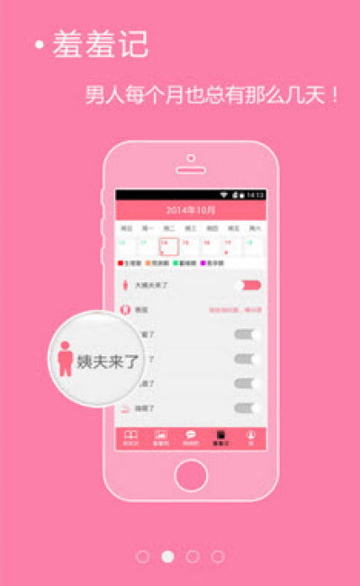 "大姨妈"--记录您的姨妈期,让未婚情侣巧妙避孕,为备孕夫妻安排最佳同房时机。