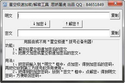 星空极速拨号这款历史悠久的宽带上网拨号软件到现在仍然有很多用户在使用,今天小编给大家介绍的星空极速加密解密工具是星空拨号的一款必备神器,快来使用这个攻击吧!完全解密星空极速。星空极速加密解密工具的作用,你实验室就知道了。