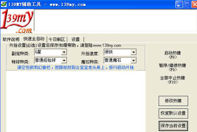 139魔域全自动智能合宝宝辅助专为魔域游戏而制作的多功能辅助工具,用户在设置好副宠种类、辅助速度、特球种类、魔石种类之后,再清空包袱和幻兽栏,然后把鼠标放到合宝宝老头身上,最新按F8启动即可。本款139魔域合宝宝挂是一个快速全自动的版本,它可以帮助用户自动挂机,让您在魔域游戏中快人一步!