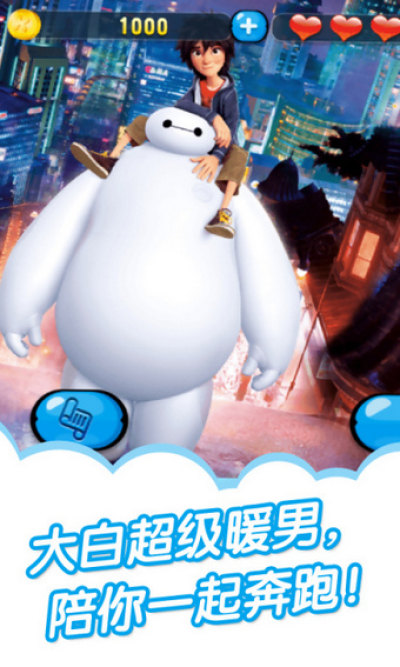 本作的玩法和天天酷跑基本一致,都是横版的跑酷手游,本作游戏的跑酷主角是超能陆战队中的人气角色大白,喜欢这个角色玩家绝对不能错过本作主题跑酷手游。
