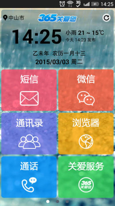 人上了年纪眼睛容易花,使用手机的时候经常看不清楚,容易误操作,365老人桌面安卓版是一款365关爱您官方为老人手机出品的手机桌面应用软件。现在的智能手机不适合老人使用,那么365老人桌面应用就可以让老人轻松使用,365老人桌面拥有一般老人手机的常用功能,还具备了颠覆常规的24小时人工服务、无忧通话、智能定位等以服务为主的功能。365老人桌面让老年人更轻松地使用智能手机。