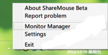 启动软件以后右键系统托盘ShareMouse图标——【Monitor Manager】