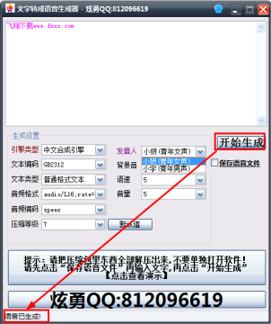 通过该软件制作免费的语音可以用作mc喊麦说话开场,也可以录制文字表白情书。生成的语音文件在软件运行目录!