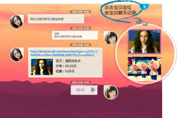 Win8旺旺提供更强大的聊天记录查看方式, 在查看聊天记录模式下,右边区域会自动获取和显示最近链接宝贝,通过点击宝贝图片,就能定位到相关的记录位置,再也不担心找不到相应的宝贝聊天记录