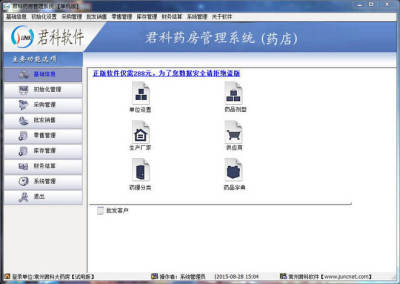 医疗用品的管理一直是每个医疗机构中非常重要的工作,实现科学信息化的现代药房管理是每一个现代化的医院的标准之一。君科药房管理系统官方版是一款能够帮助从事医药行业的朋友进行店铺管理的系统。适用于药房、药店、批发药店、批发药商、疾控中心疫苗批发、诊所卫生室、以零售批发为主的医药行业都可以使用。