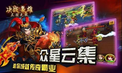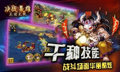 决战枭雄是一款Q版卡通画面的卡牌对战手游,游戏中的三国武将全部以Q萌的形象出现,每个武将的特殊技能组合到一起,能够产生非常强大的作用,本作的玩法和内容非常相似于刀塔传奇,作为一款三国版刀塔传奇,游戏等你来战。
