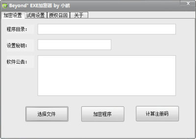 Beyond EXE加密器是一款功能强大的exe加密软件,支持一机一码超强加密,可以有效的对文件进行保护,防止被破解,一机一码授权,不同的电脑加密后的文件不同用户电脑需要不同的开启密码,是不是很强大呀,如果你需要对EXE文件加密,那么就下载试试吧。