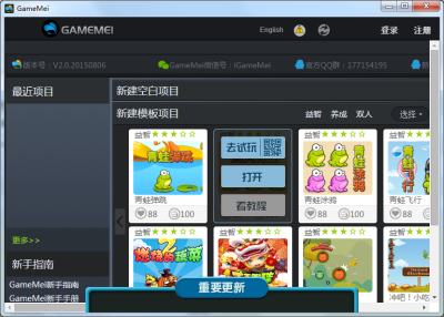 GameMei是一款非常好用的可视化游戏开发工具。GameMei不但可以在线玩游戏,而且还可以进行游戏开发编程。