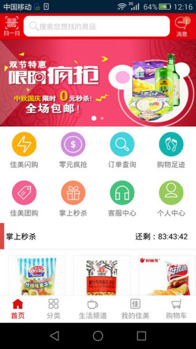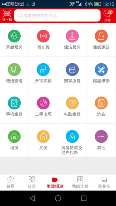 佳美生活是一个种类非常齐全的生活用品购物平台,日用百货、男装女服、家具家电和美味零售等商品应有尽有,用户在通过该手机客户端下单后会有人亲自帮你送货上门,功能十分强大,带你体验最好的网上购物享受!
