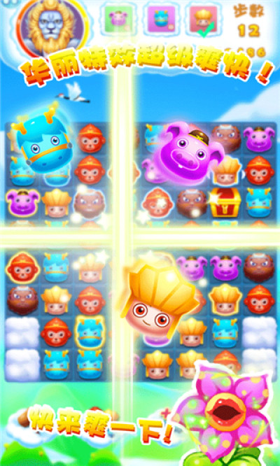 《开心西游消消乐》是一款三消休闲游戏。游戏取亿万用户喜欢的《西游记》素材,将西游故事重现,西游迷可以开开心心走趟取经路。游戏中有很多新鲜的玩法,时空漩涡、食人花、可爱的怪兽,让你的取经之路充满挑战,身临其境的感受唐僧西天取经的惊险刺激。 经典的对白让游戏更生动,绝对是一款西游迷不容错过的休闲消除游戏,男女老少适宜的三消游戏,让你在重温西游故事的过程中,也深深体会一下取经路的艰难险阻。
