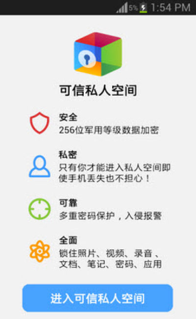 私人空间是一款保护用户手机中隐私内容的应用,可以对你在手机中的一切进行安全管理,防止他人查看,避免隐私泄露,即便手机丢了也无需再担心。这款软件功能强大,非常的实用,是大家保护手机隐私的必备工具,拒绝“门事件”的发生!