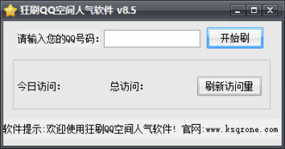 软件自动提高空间的随机访问量,软件自动让空间人气注入其中,同时会模拟用户在空间留言,让你的空间真实的人气十足。打开软件后输入QQ号码点击“开始刷”即可。