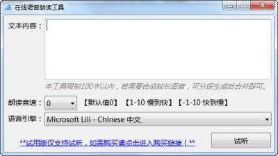 在线语音朗读工具是一款非常好用的文本朗读软件,不仅支持10个语音引擎,而且用户使用时还无需下载语音引擎。