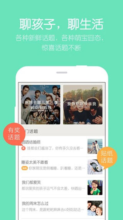 多样的话题形式,让畅聊更轻松;丰富的话题内容,让麻麻晒娃更有乐趣。只要参与话题互动,就可以赢大奖,奖品多多,mua只为送你更好的亲子生活。