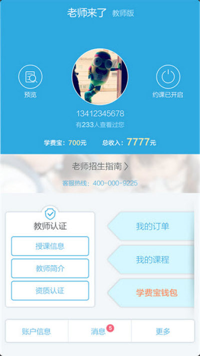 这是老师来了的教师版,身为教师的你可以在这里招生,可以发表免费的讲课视频来让更多的学生认识了解你,该软件为大家提供了多种让学生认识你的方法,有助于你招收更多的学生!