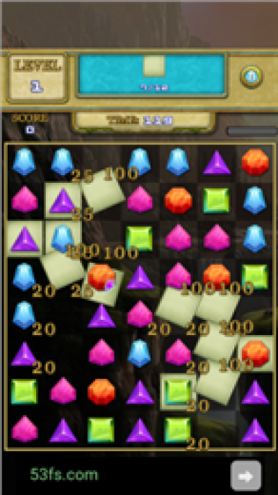 你的任务是找到宝藏并且得到它们。匹配3个或者更多的宝石清除它们。清除所有挡板完成任务。收集所有类型的宝物,在指定的时间内完成关卡。