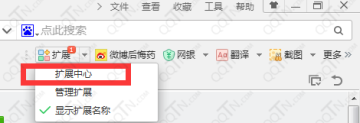 2、打开浏览器,在浏览器右上方,点击进入扩展中心.