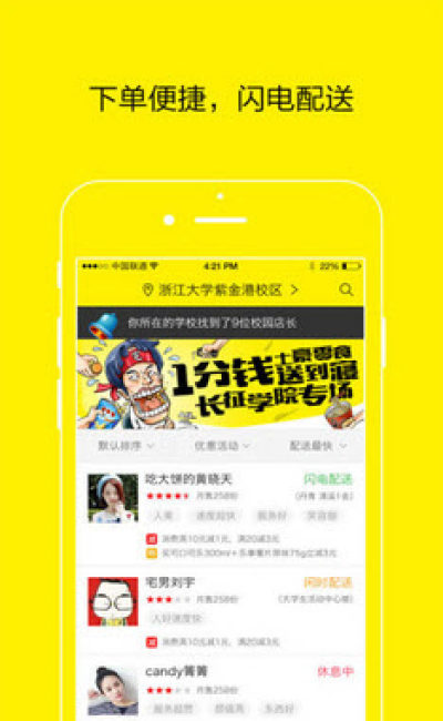 饿了?馋了?渴了?只要你想吃东西了!动动手指,分分钟送达。