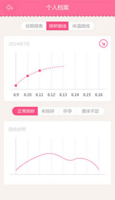 温折线图,将您的每日体温和标准体温进行对比,让您在第一时间知道自己是否怀孕。