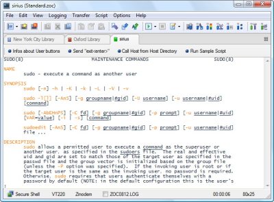 此外,它具有广泛的应用终端仿真VT102终端一样, vt220和几种类型的ANSI和并非如此广泛使用的像TN3270 , TN5250 ,Wyse,TVI和更多…Sun CDE. ZOC还具有重大的文件传输协议喜欢的X , Y型和Zmodem以及Kermit和SCP .所有这些没有什么离开可改进之处都提供了坚实的实现。