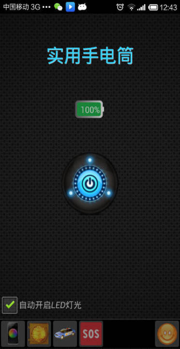 实用手电筒这款app的功能就如果它的名字一样非常的实用,能够以手机闪光灯作为发光源。虽然很多手机的系统上都自带了这种功能,但它比一般的手电筒软件实用更简单,更方便,而且亮度更高,是您黑夜之中的萤火虫,有了它,再也不怕黑夜了,软件占用内存小,运行速度快,是您生活中不可或缺的工具!