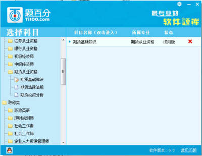 题百分软件是一款考试系统的学习软件,适用于卫生资格、执业医师、执业药师、建筑类、金融类、财会类、职业资格等各行业资格考试学习测试;内含目前最新题库和知识点,有针对性的帮助用户强化训练。祝您考试顺利!