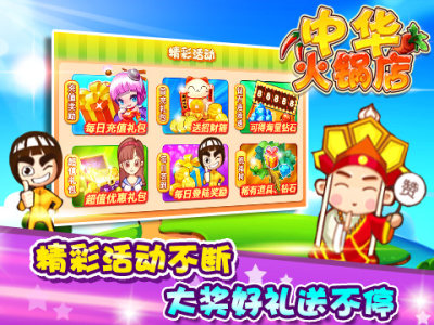 十分喜欢美食的顾客来到你经营的店铺,满足他们的食欲是你主要的目标,买下各个濒临破产的店铺,把它们经营成你的华丽产业,名声,利益,成就,都将在《中华火锅店》获得!
