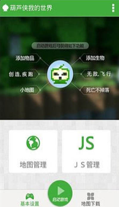 葫芦侠我的世界是一款专门为minecraft pe版玩家制作的游戏辅助工具,葫芦侠我的世界盒子集成了BlockLaughncher方块启动器、我的世界盒子、我的世界编辑器、minecraft编辑器、minecraft皮肤生成器等我的世界手机版工具的优点,欢迎下载体验!