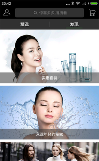 2.首页强化,“精选”+“发现”两种方式,选择更多、更轻松;