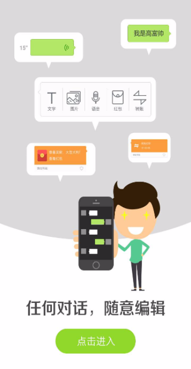 和明星聊天?脑洞大开各种神回复?全真模拟界面,用户可自由编辑对话内容,任何对话,随意生成,绝对是自娱自乐的神器,还可以跟好友开开玩笑,顽皮一下!