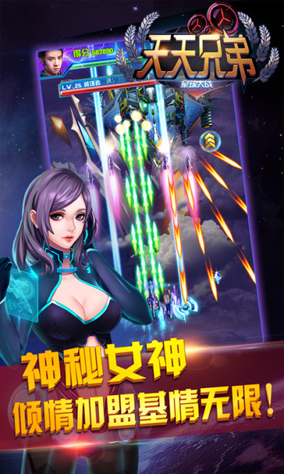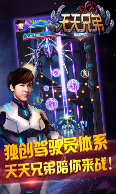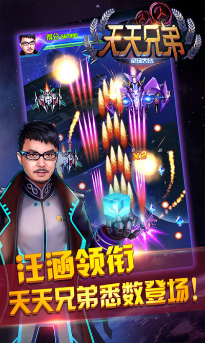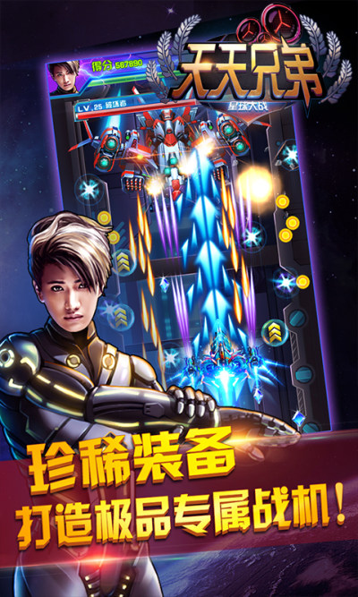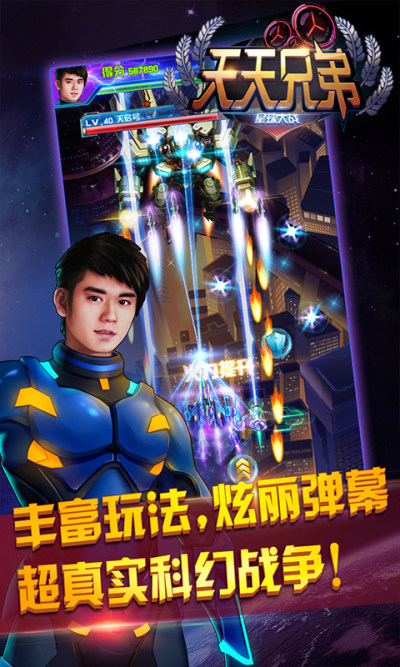 汪涵,欧弟,钱枫,俞灏明,小五!天天兄弟携手数架科幻战机伴你领略太空乱斗,驰骋星座!多样珍稀战机装备,独创升级、进阶技巧,打造极品专属战机!无尽闯关多样玩法,华丽弹幕,极限操作唤醒你心中沉浸已久的驾驶梦想。