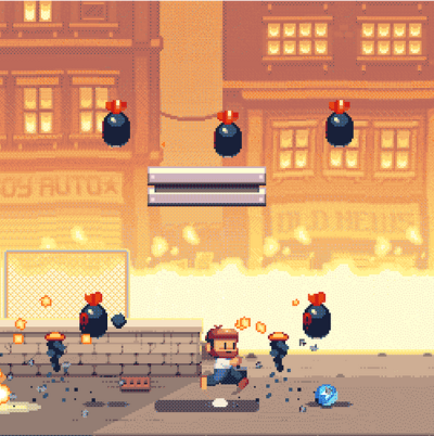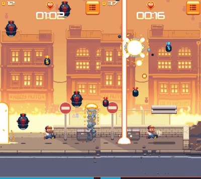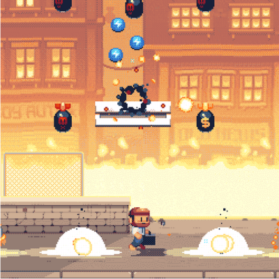 这名公务员手持着神奇的公文包,里面能释放出各种特殊障壁来阻挡爆弹,与此同时玩家也要捡取爆弹爆炸后所掉落的金币,以便提升公文包的功能。总而言之本作会是一款十分考验玩家回避技巧的游戏。