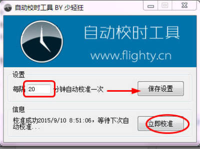 自动时工具是一款非常简单的自动校时软件,内存占用小;下载解压后无需安装点击exe程序即可打开程序界面,可选择立即校准或设置校准时间,保存设置后就可以程序就可以自己为你校准电脑时间了。